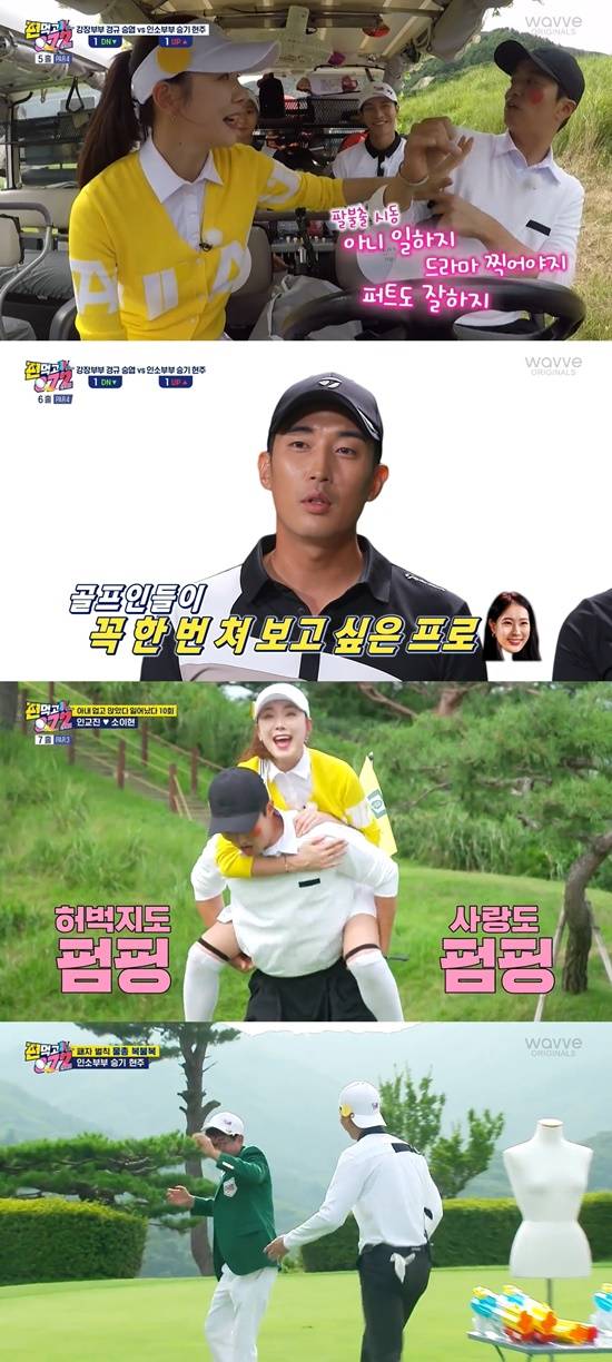 유현주 프로가 "골프장에서 남편이 멋있어 보이실 듯"이라고 말하자 소이현은 "너무 꼴보기 싫다가도 골프장에만 오면..."이라고 말을 흐려 웃음을 자아냈다. 강경준 또한 206m의 굿샷을 날렸다. 인교진은 "부부대결로 하니 자존심이 걸린 것 같다"라고 말하며 긴장감을 조성했다.