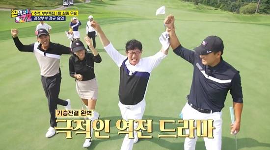 유현주 프로가 써드 샷에서 온그린에 성공했고, 강경준이 굿샷을 날리면서 그린 위 퍼트 싸움이 됐다. 이승기가 아깝게 PAR 퍼트에 실패, 이승엽은 성공하면서 '추석은 자양강장'팀이 극적인 역전승을 거뒀다. 이경규는 "무릎 꿇은 보람이 있다"라고 말하며 환호했다.