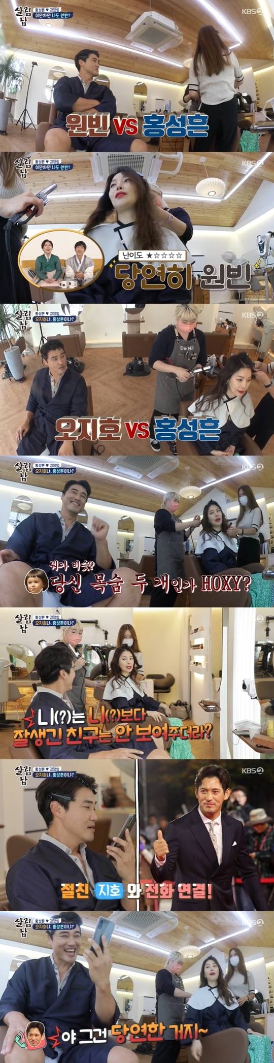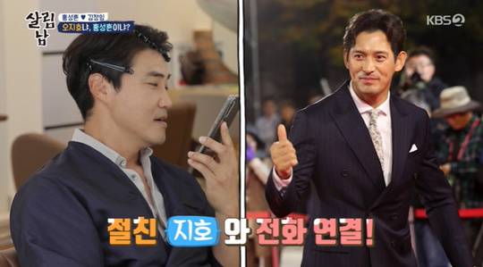 홍성흔은 즉석에서 오지호에게 전화를 걸어 상황을 설명했다. 웃음을 터트린 오지호는 “그건 당연한 거지. 너 이전에 나였다며”라고 지적했다. 본전도 못 찾고 서둘러 통화를 마친 홍성흔은 “같이 골프도 쳤는데 별 차이 없는 걸로 알고 있는데”라고 자존심을 세웠다. (사진=KBS 2TV '살림하는 남자들 시즌2' 방송 캡처)