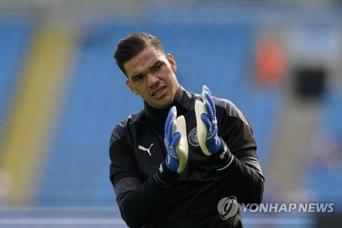 epa09474815 Goalkeeper Ederson of Manchester City ahead of the English Premier League soccer match between Manchester City and Southampton FC in Manchester, Britain, 18 September 2021. EPA/Andrew Yates EDITORIAL USE ONLY. No use with unauthorized audio, video, data, fixture lists, club/league logos or 'live' services. Online in-match use limited to 120 images, no video emulation. No use in betting, games or single club/league/player publications