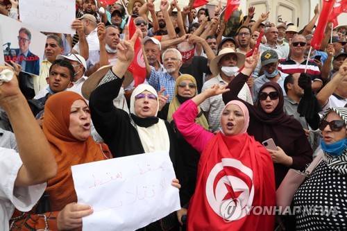 Opponents of Tunisia's President Kais Saied take part in a protest
