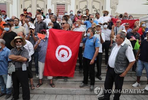Opponents of Tunisia's President Kais Saied take part in a protest