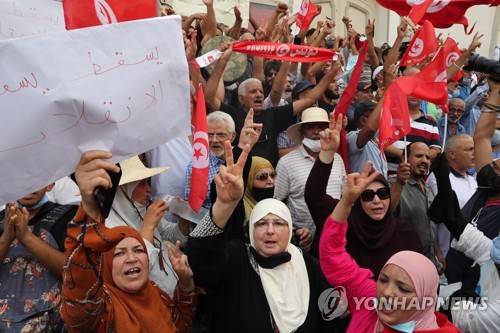 Opponents of Tunisia's President Kais Saied take part in a protest