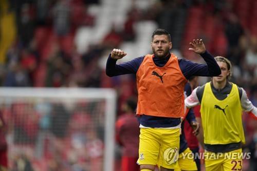 epa09474878 Joel Ward of Crystal Palace warms up before the English Premier League soccer match between Liverpool FC and Crystal Palace in Liverpool, Britain, 18 September 2021. EPA/Tim Keeton EDITORIAL USE ONLY. No use with unauthorized audio, video, data, fixture lists, club/league logos or 'live' services. Online in-match use limited to 120 images, no video emulation. No use in betting, games or single club/league/player publications