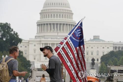 People talk before a rally near the U.S. Capitol in Washington, Saturday, Sept. 18, 2021. The rally was planned by allies of former President Donald Trump and aimed at supporting the so-called "political prisoners" of the Jan. 6 insurrection at the U.S. Capitol. (AP Photo/Brynn Anderson)