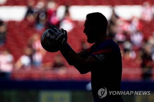 epa09474990 Atletico Madrid's goalkeeper Jan Oblak warms up ahead of the Spanish LaLiga soccer match between Atletico Madrid and Athletic Bilbao held at VWanda Metropolitani in Madrid, Spain, 18 September 2021. EPA/Rodrigo Jimenez
