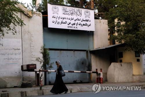 epa09474998 An Afghan woman passes by the building of former Ministry of Women Affairs which is now replaced with the conservative Ministry of Vice and Virtue, which will oversee the implementation of hardline Islamic rules in the country, in Kabul, Afghanistan, 18 September 2021. Taliban officials removed the sign from the former government department that oversaw women?s rights and replaced it with one that read: 'The Ministry of Propagation of Virtue and Prevention of Vice of the Islamic Emirate of Afghanistan.' The move was harshly criticized by women activists. The Taliban are bringing back the Vice and Virtue Ministry 20 years after it was previously abolished when their former regime was toppled by the 2001 United States invasion. EPA/STRINGER