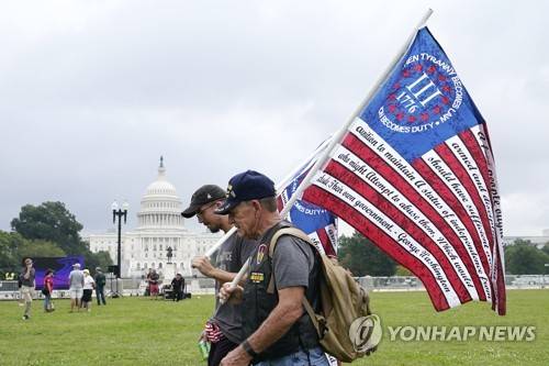 People arrive to attend a rally near the U.S. Capitol in Washington, Saturday, Sept. 18, 2021. The rally was planned by allies of former President Donald Trump and aimed at supporting the so-called "political prisoners" of the Jan. 6 insurrection at the U.S. Capitol. (AP Photo/Alex Brandon)