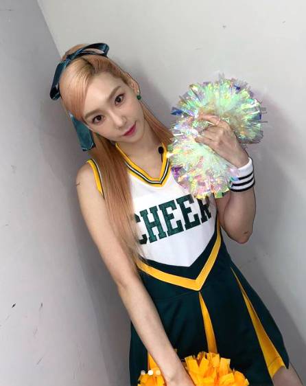 공개된 사진 속 태연은 응원도구를 들고 완벽한 치어리더 패션을 선보였다.
