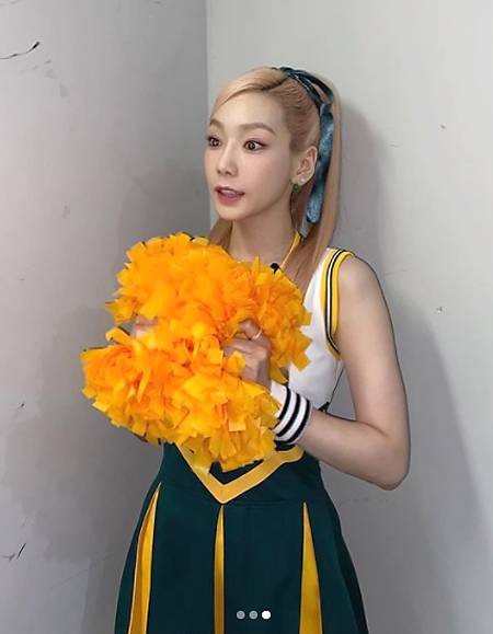공개된 사진 속 태연은 응원도구를 들고 완벽한 치어리더 패션을 선보였다.