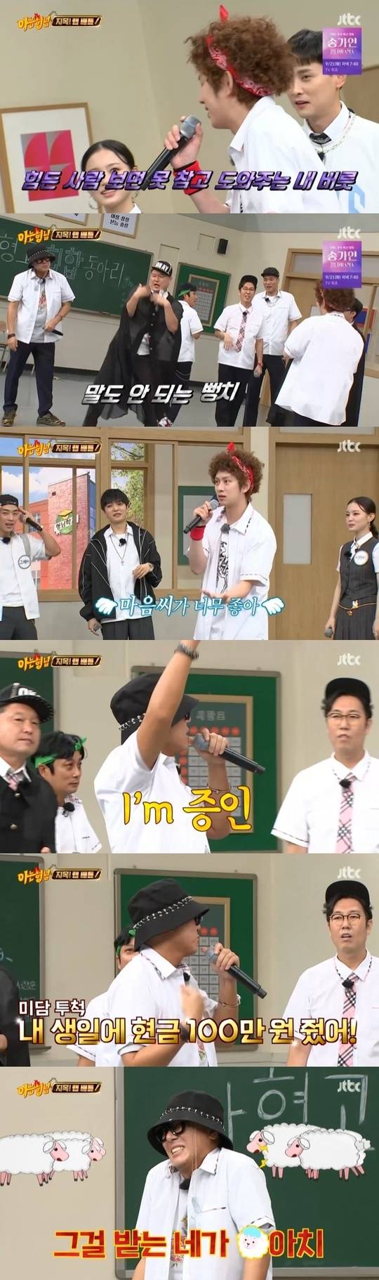 그러자 이수근은 "그걸 받는 네가 더 양아치"라고 디스를 해 웃음을 자아냈다. (사진=JTBC '아는 형님' 캡처)