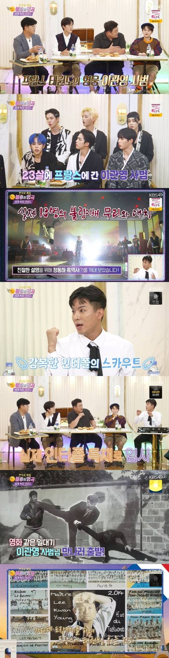 나태주는 이관영 사범에 대해 "23살에 프랑스로 가셨다. 외국인이다 보니까 13명의 강도가 사범님의 물품을 뺏어가려고 공격을 했다. 사범님이 한국의 힘을 거기서 보여주셨다. 제압하는 모습을 프랑스 인터폴이 현장을 목격한 거다"며 직속 태권도 사범으로 인터폴 직원으로 채용 됐다고 밝혔다.