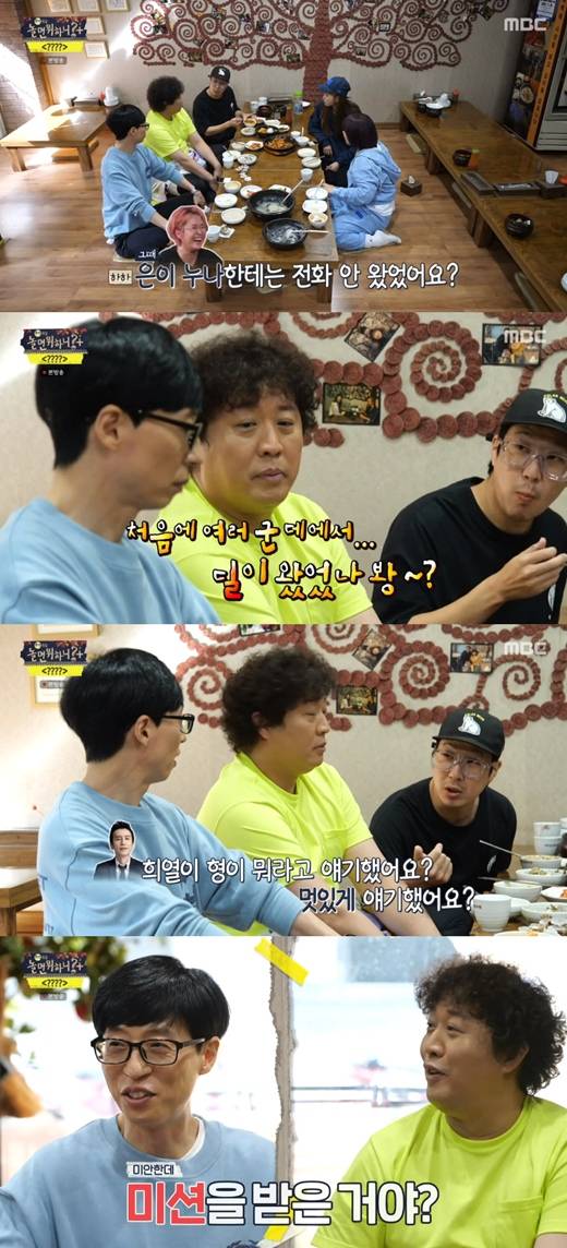 이어 하하는 "송은이 누나한테서는 연락 안 왔냐"라고 물었다. 정준하도 "영입하는 거"라고 거들었다. 유재석은 "은이? 은이는 잠깐 통화하다 말았다"라며 순순히 답했다.