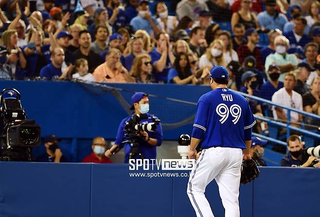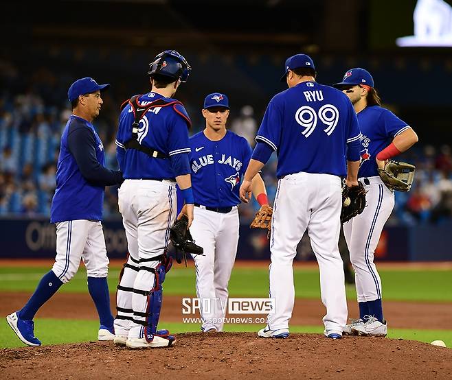 그 순간 류현진(34, 토론토 블루제이스)은 머리를 때리며 자책하는 모습을 보였습니다.