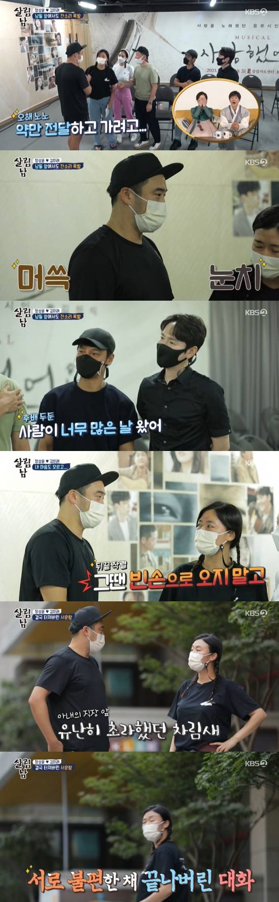 18일 방송된 KBS 2TV '살림하는 남자들 시즌2'에서는 추석 특집으로 꾸며진 가운데 정성윤과 김미려가 부부싸움 끝에 화해하는 장면이 전파를 탔다.