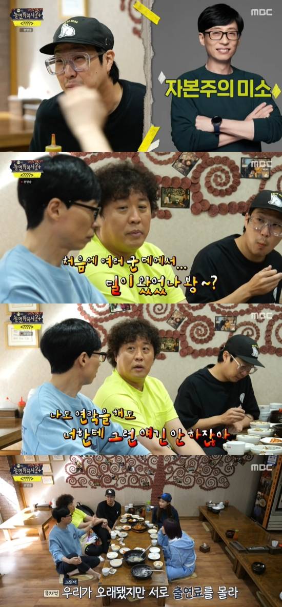 특히 유재석은 "(정준하와 나의 인연이) 그렇게 오래됐지만 서로 출연료를 모른다"라며 말했고, 하하는 "10배 차이 난다"라며 폭로했다.