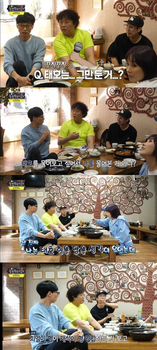 정준하는 김태호 PD에게도 “그만 둔거야?”라고 물었다. 김태호 PD의 MBC 퇴사를 언급한 것. 하하는 “김태호 PD SNS에 글을 올렸다. 난 진짜 김태호 PD를 영입할 생각이 없었는데, 유희열이 유재석을 영입한 걸 보고 나라고 왜 못해라는 생각이 들었다”고 말했다. 이에 유재석은 “김태호 PD가 너희 쪽에 들어가면 너희 다 나가야 한다”고 말해 웃음을 자아냈다.