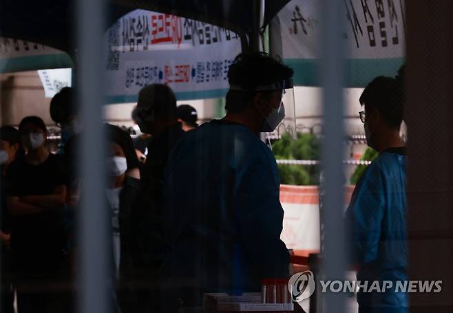 (서울=연합뉴스) 홍해인 기자 = 19일 오전 서울역 중구 신종 코로나바이러스 감염증(코로나19) 임시선별검사소에서 검사소 관계자가 시민들에게 검사 키트를 나눠주고 있다.