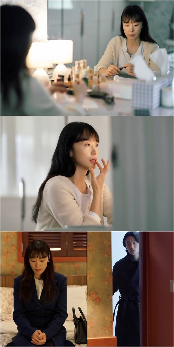 그런 가운데 부정이 특별한 외출 준비에 나선다. 화장대 앞에 앉은 거울 속 부정의 모습이 왠지 모르게 어색하다. 먼지가 내려앉은 화장품을 꺼내 발랐다 지웠다 하기를 여러 번. 그의 손끝에서 미묘한 설렘과 긴장감이 묻어난다. 이어 부정은 낯선 방안의 침대에 걸터앉아 누군가를 기다리고 있다. 부정의 초조한 얼굴은 궁금증을 고조시킨다. 기다림의 적막을 깨고 나타난 사람은 바로 강재. 문 앞에 서서 부정을 바라보는 그의 쓸쓸하고도 깊은 눈빛이 여운을 남긴다.