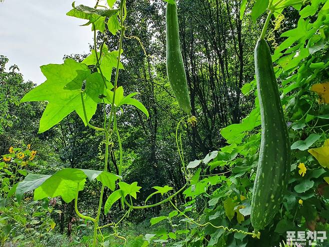 [포토친구] 화사한 수세미 꽃과 길쭉한 수세미 열매