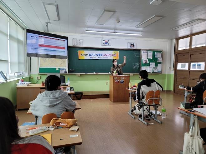 합천군 맞춤형 교육지원사업은 ▲진로·진학 교육 ▲자기주도 학습 ▲명사특강 ▲찾아오는 대학·산업체 탐방 ▲직업체험 프로그램 등 다양한 교육프로그램을 학교별 요청에 맞춰 제공해주는 사업으로, 2015년부터 매년 시행하고 있다.