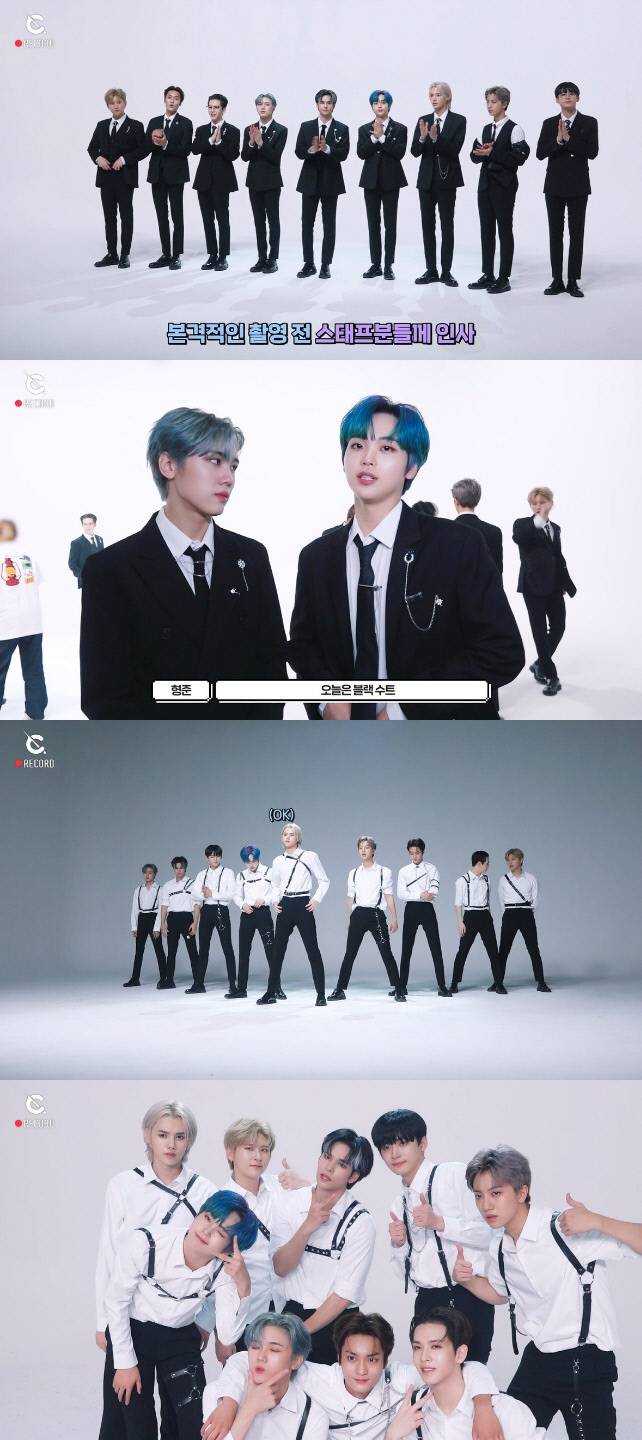 특히 크래비티는 흠잡을 데 없는 슈트 자태를 드러내며 칼군무를 펼쳤고, 더욱 완벽한 영상을 만들기 위해 꼼꼼하게 모니터링하는 모습으로 프로페셔널한 면모까지 드러냈다.