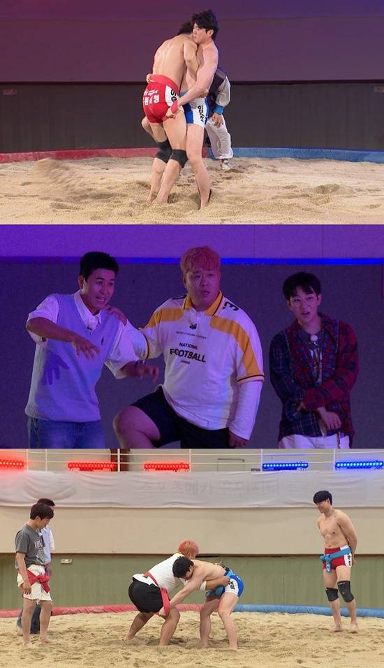 그런가 하면 생애 첫 씨름에 도전한 딘딘은 선수들에게 필살기를 전수받고 자신감을 불태운다. 작은 체격의 ‘뒷동산 급’ 딘딘은 밭다리 기술을 완벽하게 구현하며 심상치 않은 패기를 뽐낸다. 급기야 딘딘은 당돌하게 ‘백두 급’ 문세윤을 대결 상대로 지목한다고 해, 극과 극의 체급을 지닌 두 남자의 승부가 어떻게 마무리될지 궁금해진다.