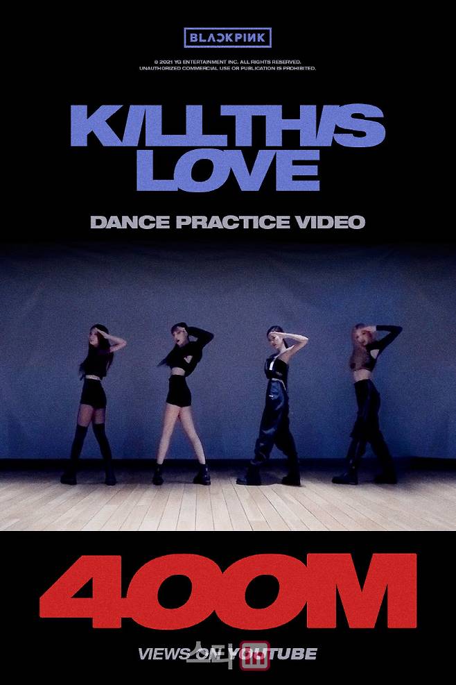 19일 YG엔터테인먼트에 따르면 ‘Kill This Love’ 안무 영상은 이날 오전 0시 5분께 유튜브에서 조회수 4억회를 돌파했다.