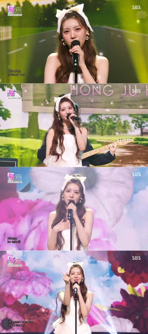 지난 19일 오후 방송된 SBS '인가가요'에서는 홍주현이 두 번째 싱글 '플라워' 청량미 넘치는 무대를 선보였다.