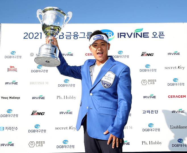 (서울=뉴스1) = 19일 경상북도 칠곡 파미힐스CC에서 열린 2021 시즌 KPGA 코리안투어 ‘2021 DGB금융그룹 어바인 오픈' 우승을 차지한 박상현이 우승 트로피를 들어 보이고 있다. (KPGA제공) 2021.9.19/뉴스1