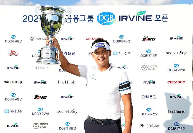 (서울=뉴스1) = 19일 경상북도 칠곡 파미힐스CC에서 열린 2021 시즌 KPGA 코리안투어 ‘2021 DGB금융그룹 어바인 오픈' 우승을 차지한 박상현이 우승 트로피를 들어 보이고 있다. (KPGA제공) 2021.9.19/뉴스1