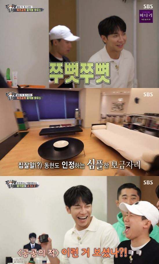 그리고 공개된 윤석열의 집. 멤버들은 집구경을 하면서 "굉장히 심플하다. 요즘 느낌의 인테리어다. 그리고 공부를 되게 열심히 하시나보다"고 말했다. 윤석열은 멤버들에게 "맛있는 것 좀 해드리려고 오라고 했다"고 초대 이유를 말했고, 이승기는 "이미지 메이킹 하시는거냐"고 물어 눈길을 끌었다.