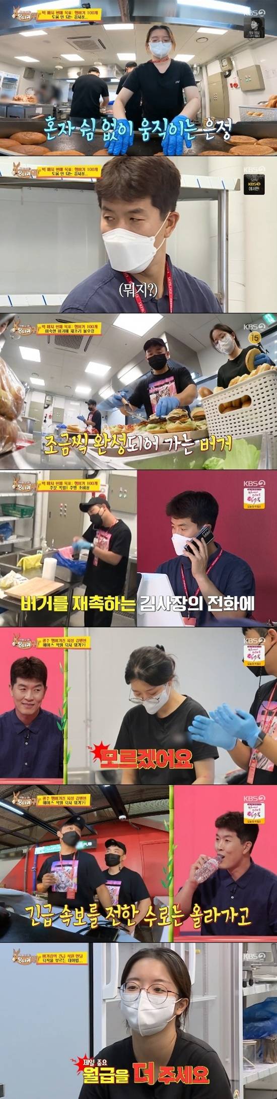 김병현과 김은정 직원 사이에 싸늘한 분위기가 흐르는 가운데 직원들은 햄버거 100개 만들기에 열중했다. 그 사이 관중들이 입장을 시작하면서 김병현의 햄버거 가게에 주문이 밀려들기 시작했다. 김병현은 "방송을 보시고 더 찾아주신다"고 말했다.