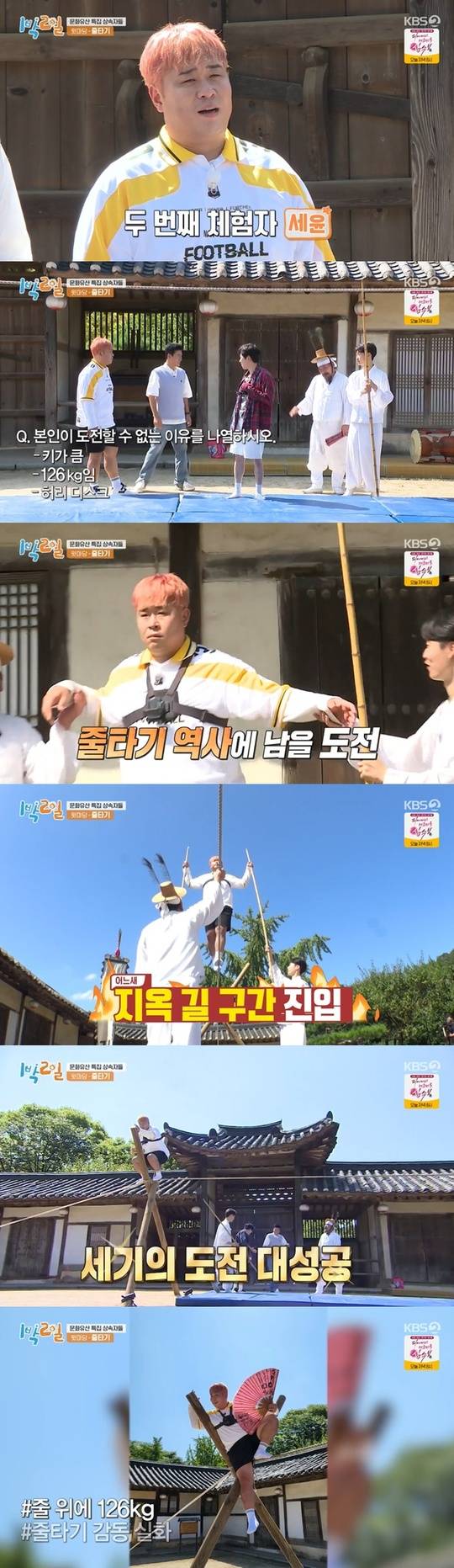 9월 19일 방송된 KBS 2TV '1박 2일 시즌4'에서는 문화유산 특집 상속자들 줄타기 도전이 그려졌다.