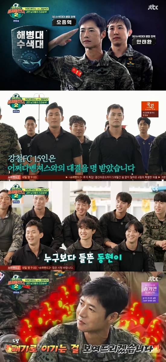 19일 방송된 JTBC '뭉처야 찬다 시즌2'(이하 '뭉찬2')에서는 최정예 특수부대 출신 예비역들이 모인 여섯 부대가 등장해 어디에서도 본 적 없는 거친 승부를 겨뤘다.