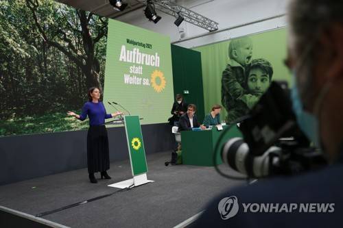 epa09476220 Greens party's chancellor candidate Annalena Baerbock speaks during a Greens party congress ahead of federal parliamentary elections, in Berlin, Germany, 19 September 2021. Federal elections are scheduled for 26 September. EPA/Sean Gallup / POOL