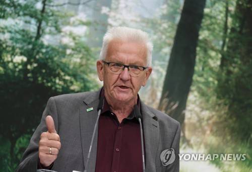 epa09476227 Leading German Greens party member and Baden-Wurttemberg premier Winfried Kretschmann speaks during a Greens party congress ahead of federal parliamentary elections, in Berlin, Germany, 19 September 2021. Federal elections are scheduled for 26 September. EPA/Sean Gallup / POOL