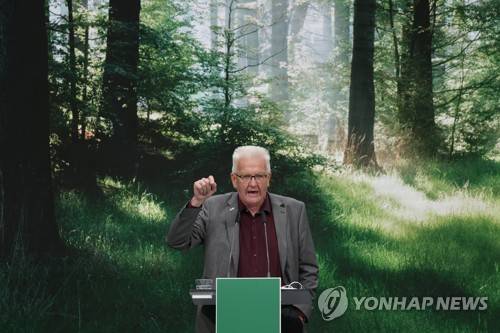 epa09476230 Leading German Greens party member and Baden-Wurttemberg premier Winfried Kretschmann speaks during a Greens party congress ahead of federal parliamentary elections, in Berlin, Germany, 19 September 2021. Federal elections are scheduled for 26 September. EPA/Sean Gallup / POOL