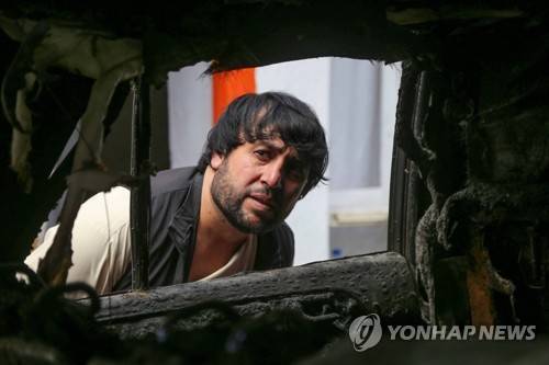 epa09476252 A man looks at the wreckage of the vehicle, that was damaged in a US drone strike, a day after US apologised for mistakenly attacking the civilians, in Kabul, Afghanistan, 19 September 2021. A US drone strike at a civilian compound on 29 August killed at least 10 persons including seven children in Kabul. EPA/STRINGER