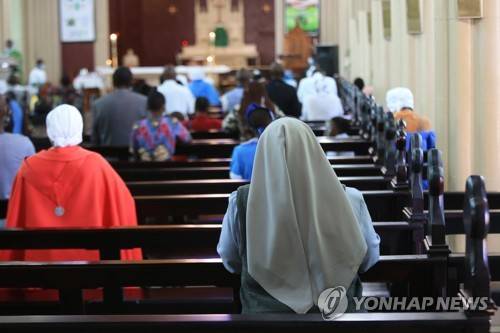 epa09476258 Congregants attend a church service at the Cathedral of the Sacred Heart in Harare, Zimbabwe, 19 September 2021. The country's parliament on 14 September 2021 enforced a ban from attending church services to those who have not yet received a COVID-19 vaccine. EPA/AARON UFUMELI
