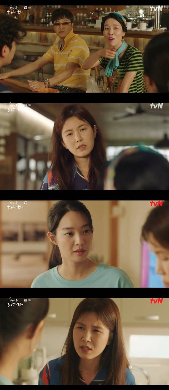 이어 표미선은 윤혜진에게 “조사장 너무 하다. 너더러 홍반장이랑 자놓고 지성현이랑 양다리 걸쳤다고 하더라”고 전했다. 윤혜진은 “놀랍지도 않다”고 반응하다가 표미선이 “남자들이 아깝다던데?”라고 말하자 “남자들?”이라며 분노했다. (사진=tvN ‘갯마을 차차차’ 캡처)