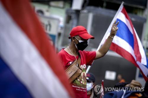 epa09476307 Anti-government protesters flash the three finger salute at a car mob rally calling for the resignation of the prime minister in Bangkok, Thailand, 19 September 2021. The demonstration calling for the resignation of the Thai Prime Minister, blaming him for the government's failure in handling the COVID-19 crisis, was held in conjunction with the 15th anniversary of the military coup against then-premier Thaksin Shinawatra on 19 September 2006. EPA/DIEGO AZUBEL