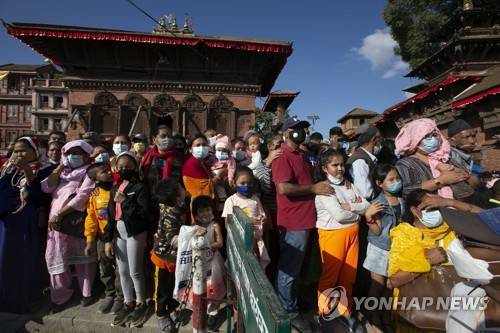 Nepalese devotees gather to watch the annual Indra Jatra festival in Kathmandu, Nepal, Sunday, Sept. 19, 2021. The feast of Indra Jatra marks the return of the festival season in the Himalayan nation two years after it was scaled down because the pandemic. (AP Photo/Niranjan Shrestha)