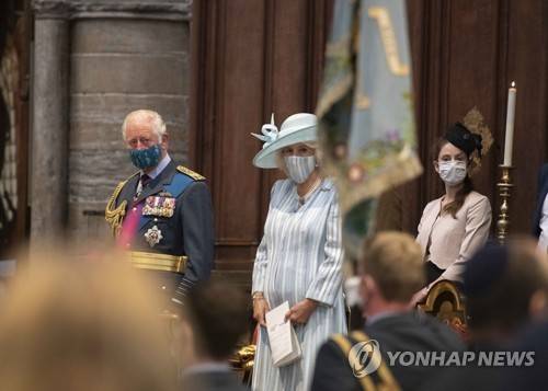 Britain's Prince Charles and Camilla, the Duchess of Cornwall attend a service to mark the 81st Anniversary of the Battle of Britain at Westminster Abbey in London Sunday Sept. 19, 2021. (Julian Simmonds/Pool via AP) POOL