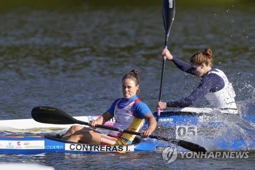 epa09476351 Isabel Contreras of Spain in action during the Womans K1 Kayak 500 meter final at the Canoe and Kayak sprint World Championsships 2021 at Bagsvaerd Lake, in Copenhagen, Denmark, 19 September 2021. EPA/Keld Navntoft DENMARK OUT