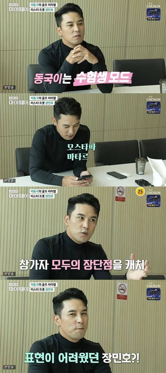 제작진은 장민호에게 "노래만 하시다가 '미스트롯2'로 심사를 했는데 어땠냐"고 물었다. 장민호는 "노래 부르는 건 내 것만 하면 되는데 마스터는 역할이 있다. 오디션 참가자들이 어떤 부분을 연습해야 하는지 이런 것들을 설명을 잘 못해 아쉬웠다"고 답했다.