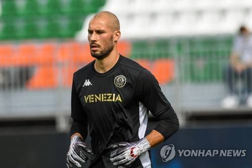 epa09476370 Niki Maenpaa of Venezia FC warms up prior to the Italian Serie A soccer match Venezia FC vs Spezia Calcio at the Pier Luigi Penzo stadium in Venice, Italy, 19 September 2021. EPA/ALESSIO MARINI
