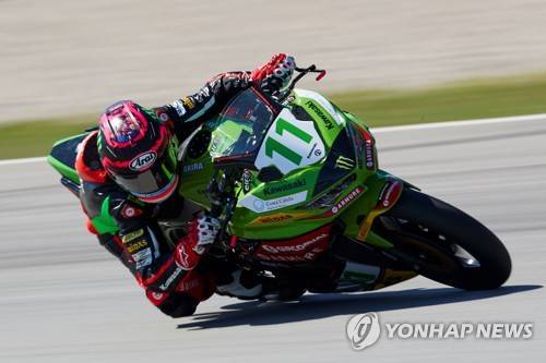 epa09476428 Spanish Worldssp300 rider Ana Carrasco of Kawasaki Ninja 400 in action during the race 2 of the Hyundai N Catalunya WorldSBK Round 2021 held at Montmelo racetrack in Barcelona, Spain, 19 September 2021. EPA/Alejandro Garcia