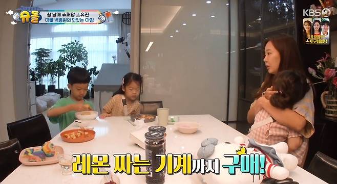 부부의 러브스토리도 공개됐다. 소유진은 “첫 아이 임신 때 백종원이 레몬을 하루에 한 박스 씩 사줬다. 나중엔 레몬 짜는 기계도 샀는데 달인이 되어 있었다”며 당시를 회상했다.