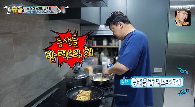 이날 백종원은 이른 아침부터 아이들의 식사를 챙기는 모습을 보였다. 아이들의 요청에 따라 백종원이 만들어낸 건 바로 프렌치토스트.